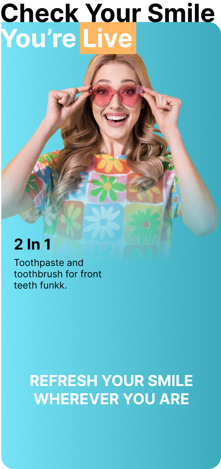 FunkkOFF!® is not here to replace your full routine. This is front-teeth energy only. Think of it as your confidence check, not a deep clean. It’s for airport bathrooms before boarding.